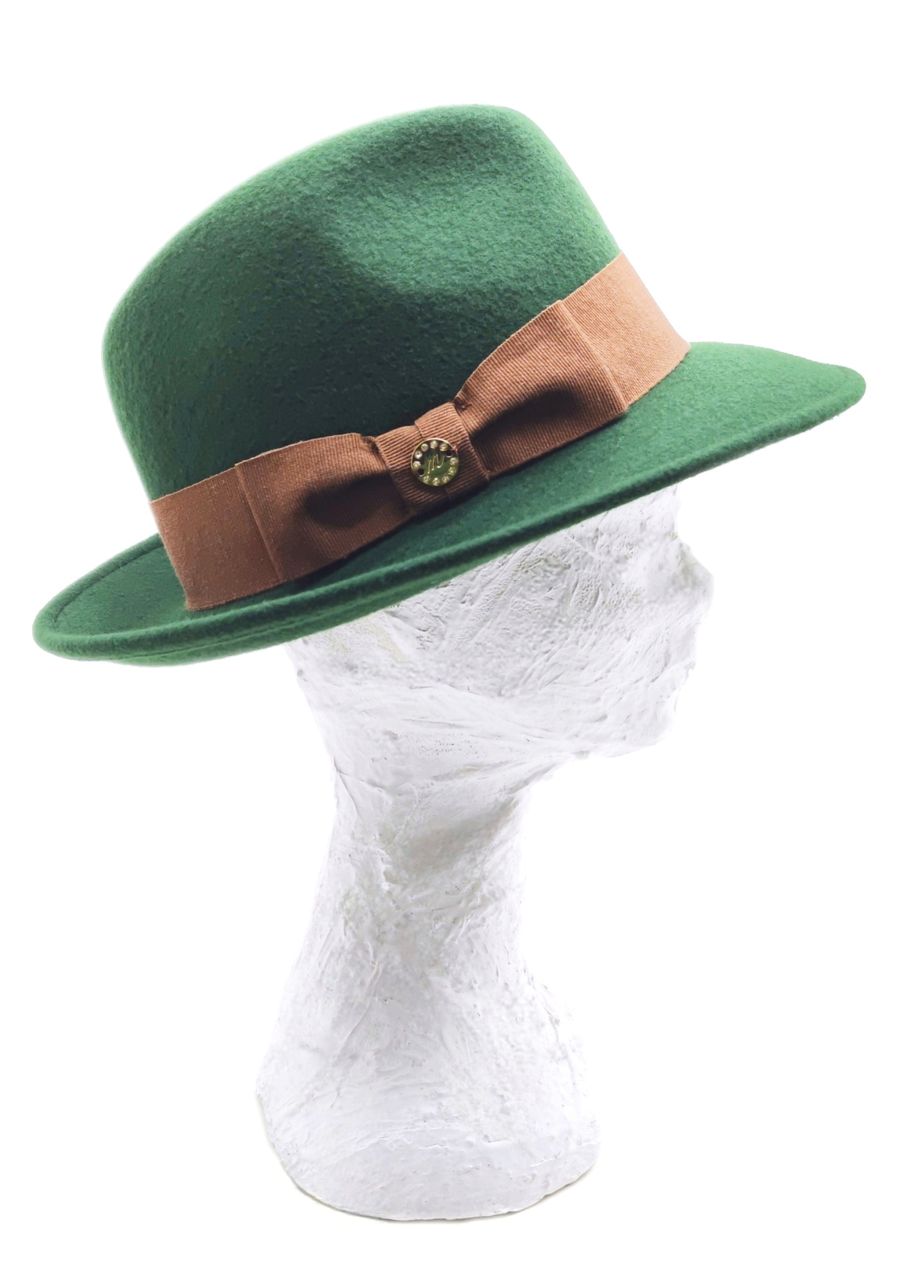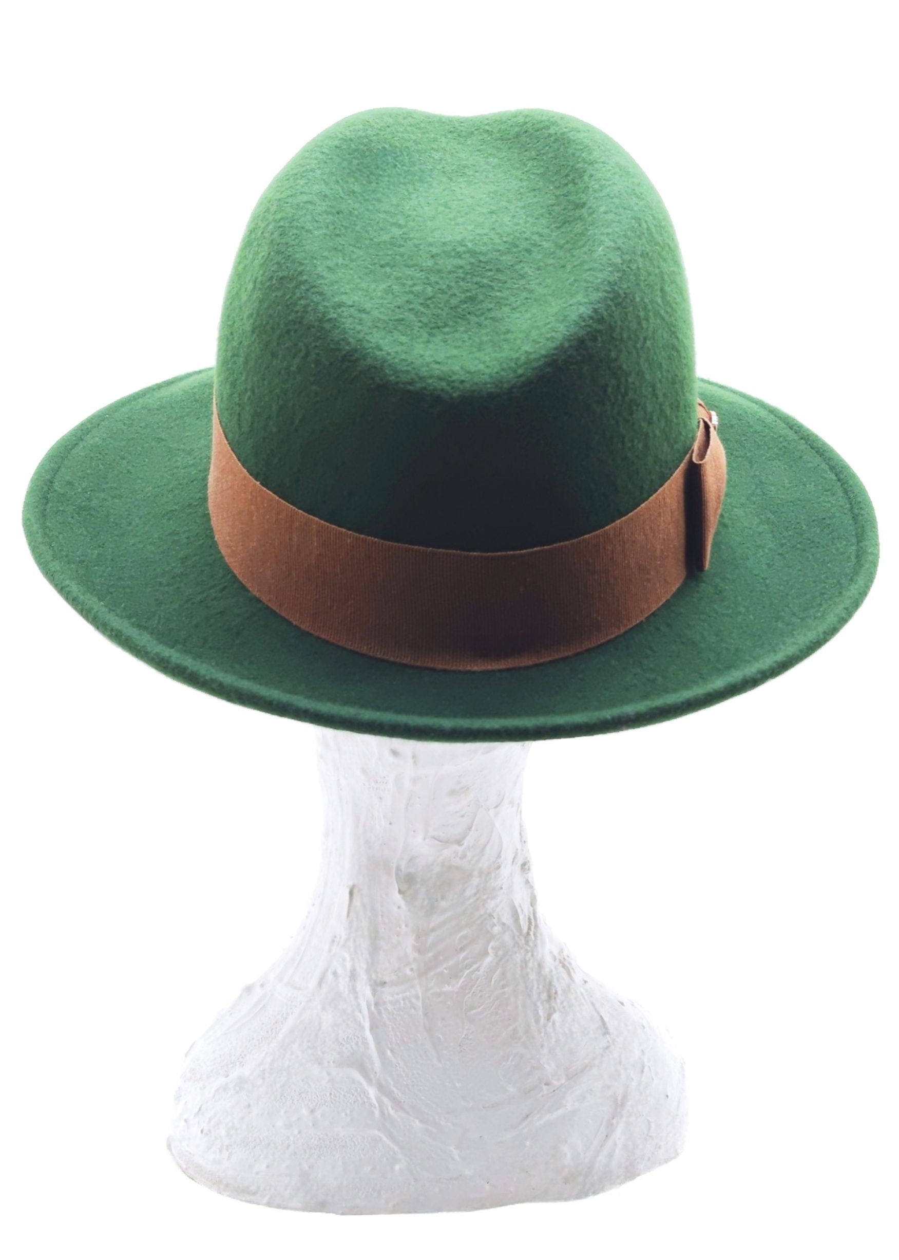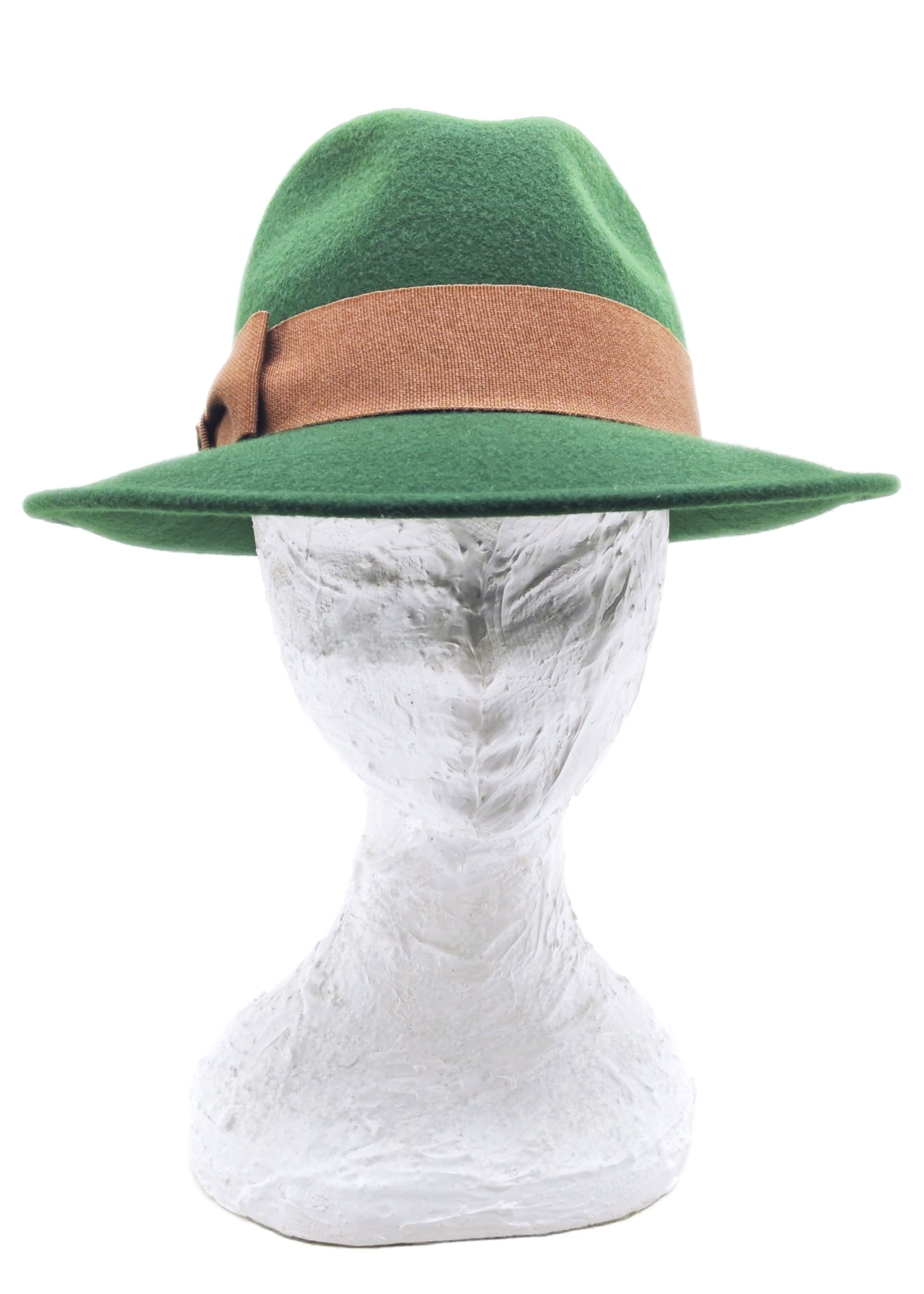 FEDORA A TESA MEDIA FELTRO VERDE GROS-GRAIN BEIGE A CONTRASTO