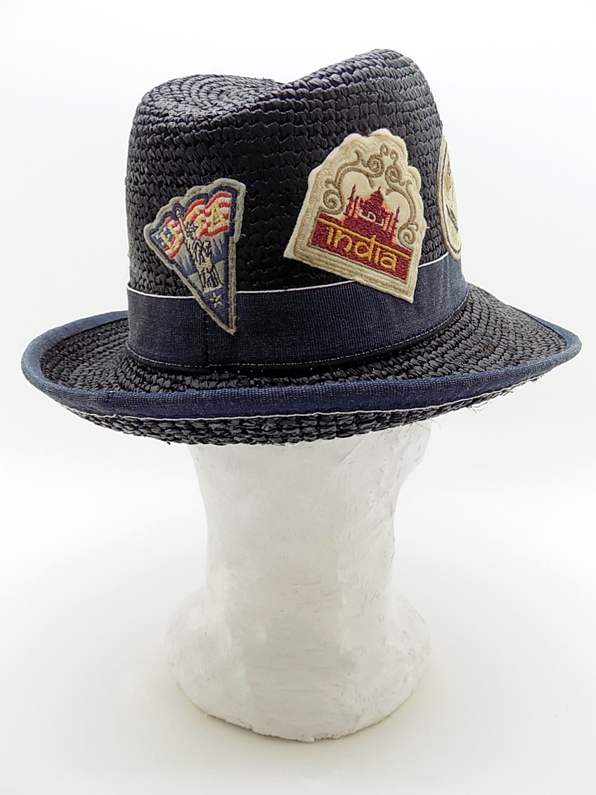 VICTOR IN RAFIA CROCHET NERO CON PATCHES VIAGGI-en