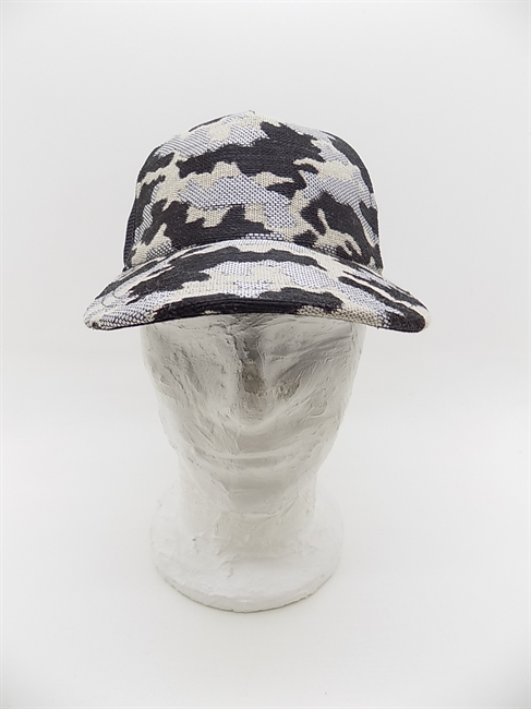 Baseball in fantasia mimetica grgia, nera e beige, con retina nera. Perfetto per la stagione estiva, fresco e regolabile di Luca della Lama.