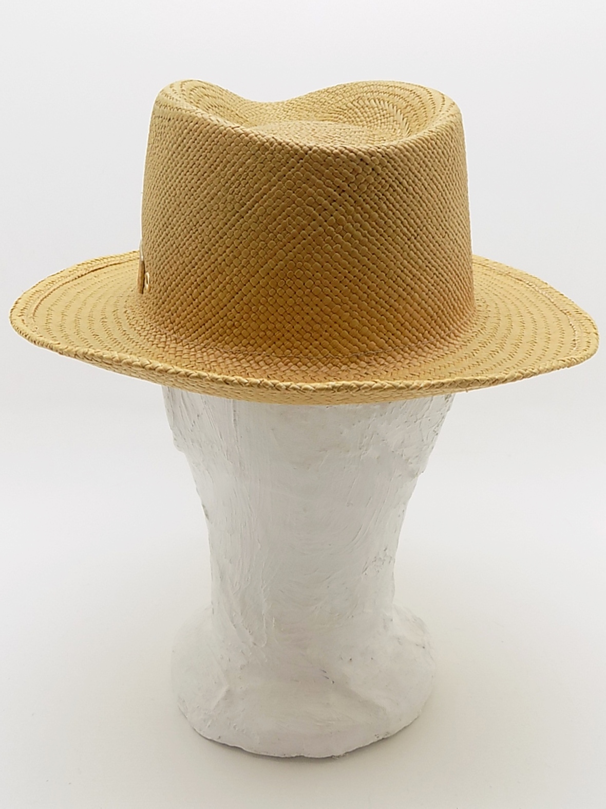 Cappello modello Panama Roland, in palma naturale di colore beige, dalle forme semplici e dalla consistenza rigida. Perfetto per la stagione estiva, realizzato in Italia da Luca Della Lama.
