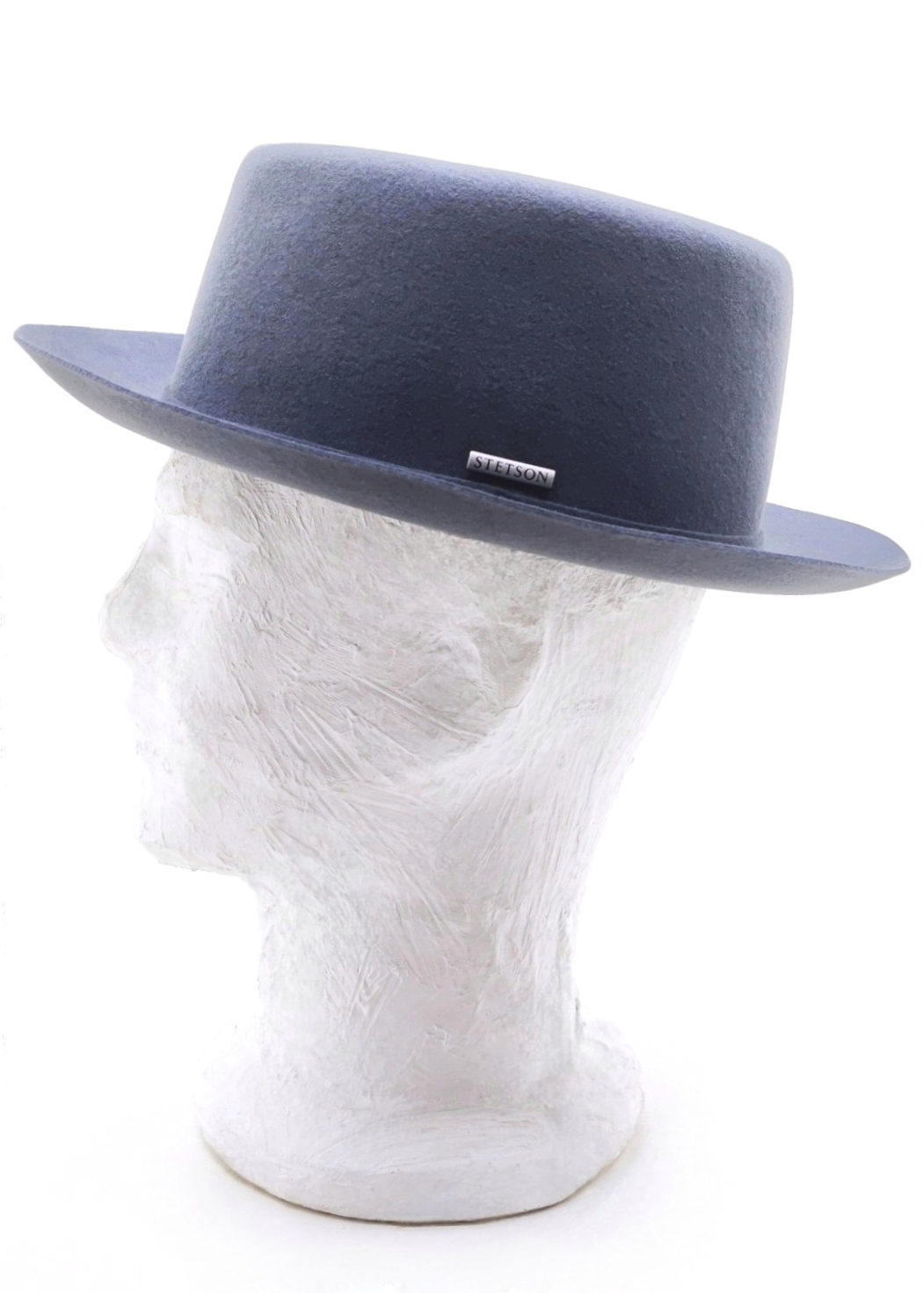 Cappello modello Pork Pie Softfelt in Lana Maysville di colore grigio antracite, con interno sfoderato. E' realizzato in pregiato feltro Asahi Guard®, che offre una particolare resistenza all’acqua e alle macchie e che garantisce calore e comodità anche nelle fredde giornate invernali. A caratterizzarlo la tesa medio-stretta (di 5,5 cm circa) e rialzata, la corona sagomata, il sottile cinturino in feltro tono su tono e la targhetta in metallo con la scritta Stetson. Un accessorio di grande fascino, dall'eleganza minimal, ma che non passa inosservato.