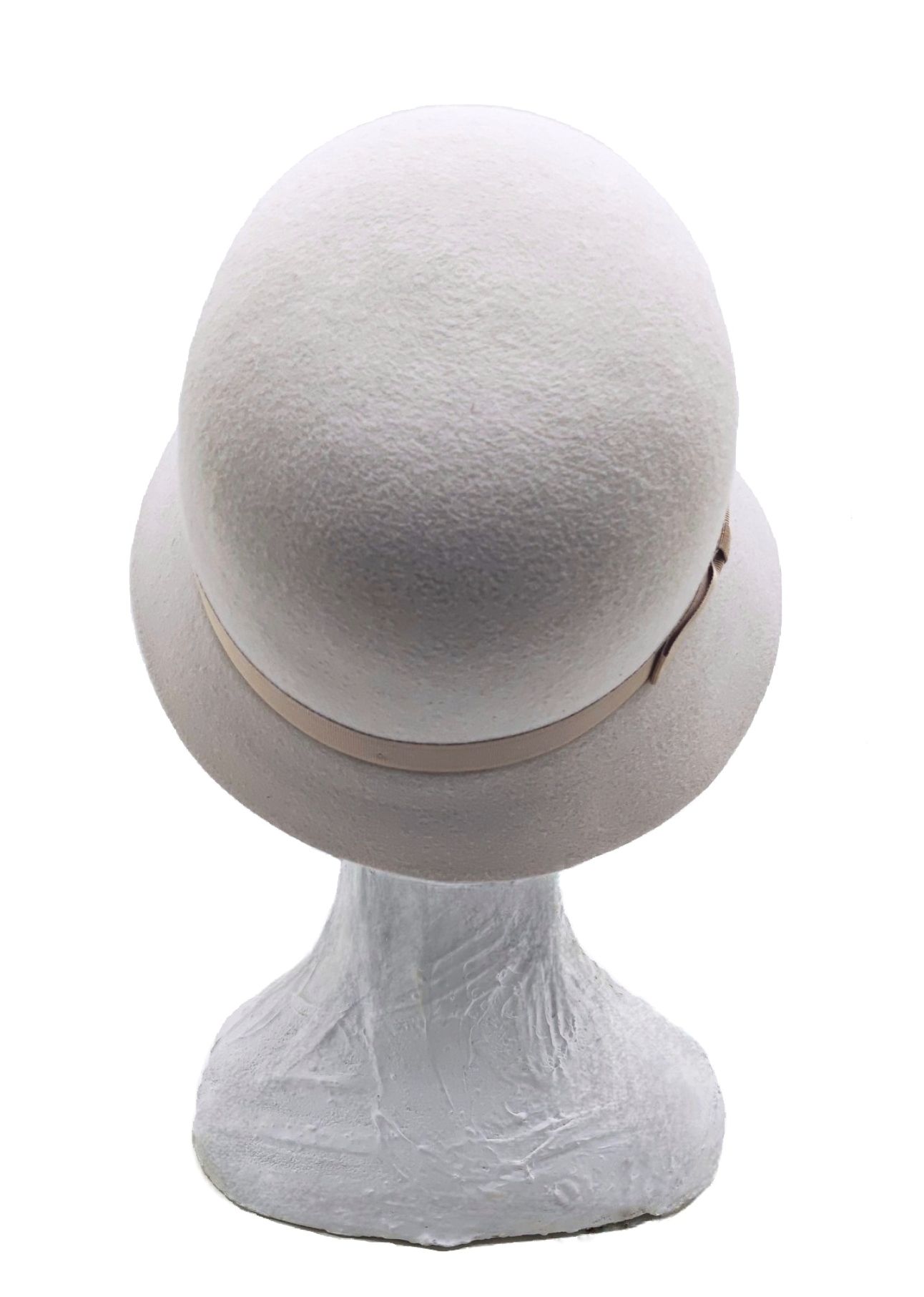 Nina Cloche in feltro rasato di color crema, con nastro e fiocco in gros-grain tono su tono. Un modello sfoderato, leggero e dalla vestibilità confortevole, copricapo raffinato ed elegante dalla tesa asimmetrica (da circa 4,5 cm a circa 8 cm). Un accessorio dallo stile un po' rétro che si abbina perfettamente a qualsiasi tuo outfit, firmato Borsalino.