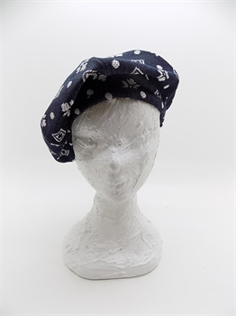 Cappello modello Traveller in carta tessile di colore blu, con nastro in gros-grain bianco e stemmi dei paesi del mondo. Viaggia in libertà con la co ...