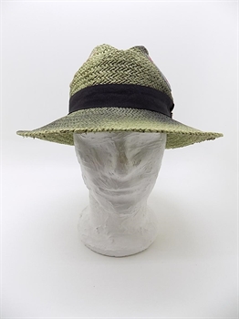 Cappello da uomo modello Trilby, in juta lavata di colore naturale. Il copricapo fresco, leggero e traspirante, è impreziosito da applicazioni patch ...